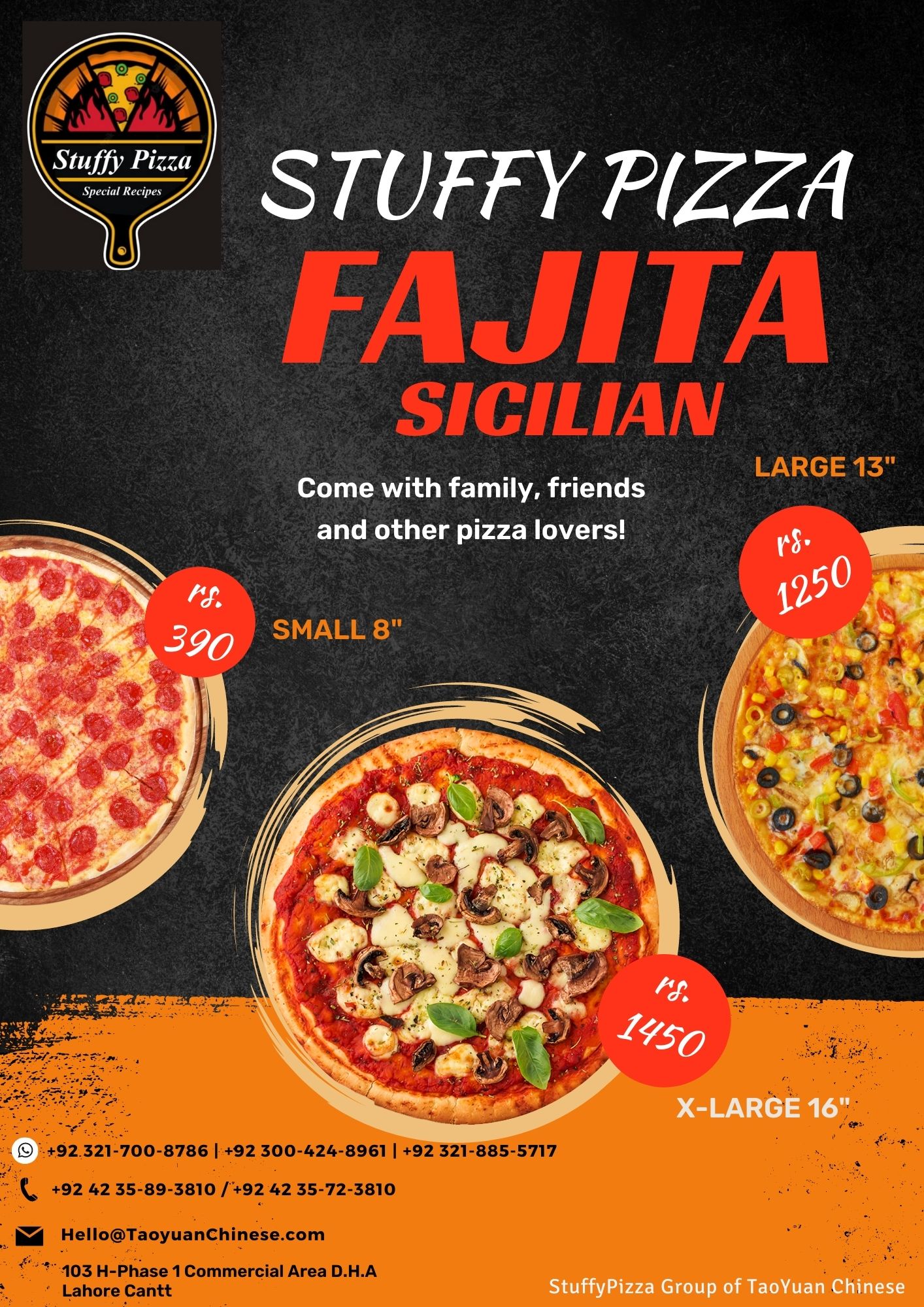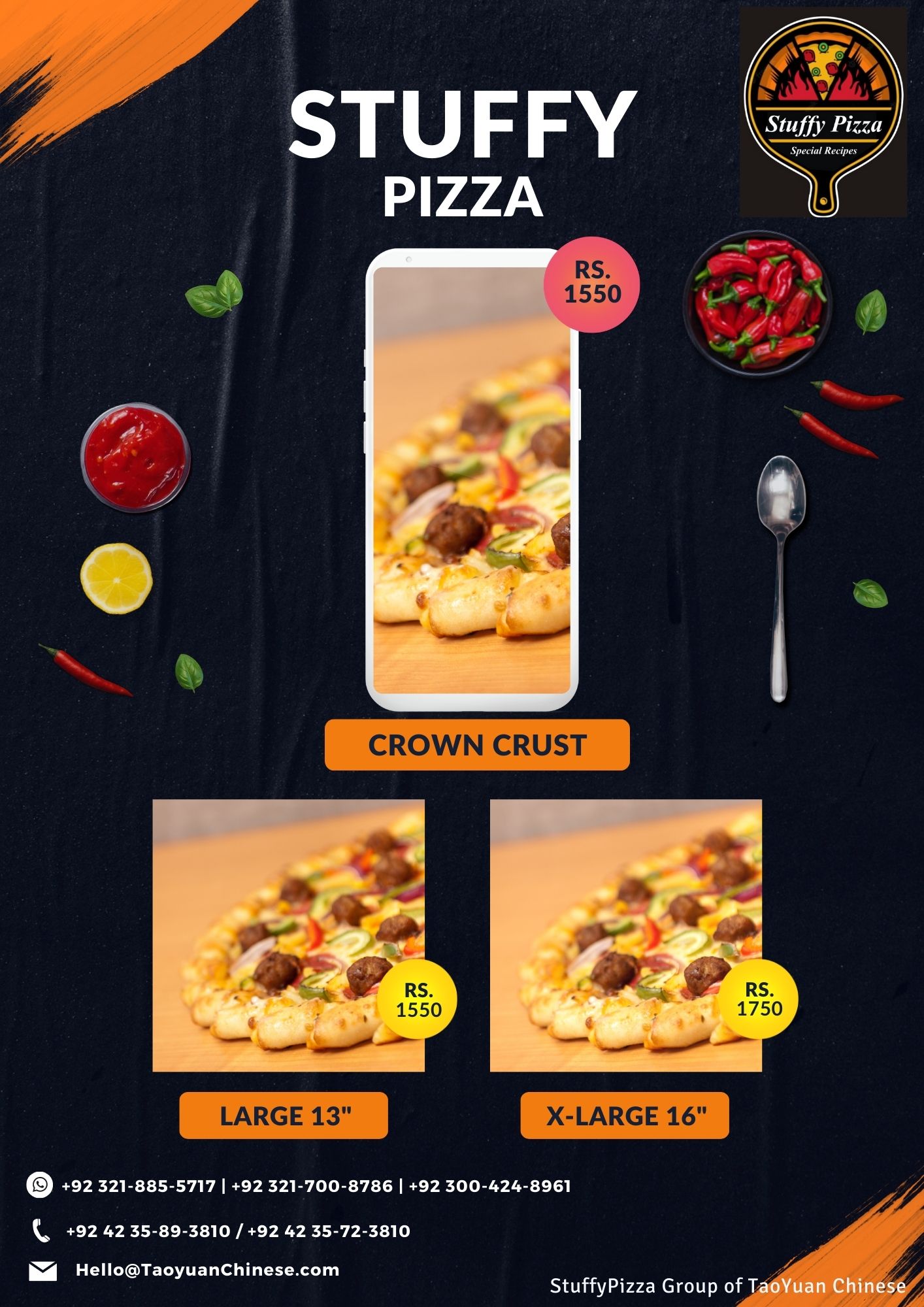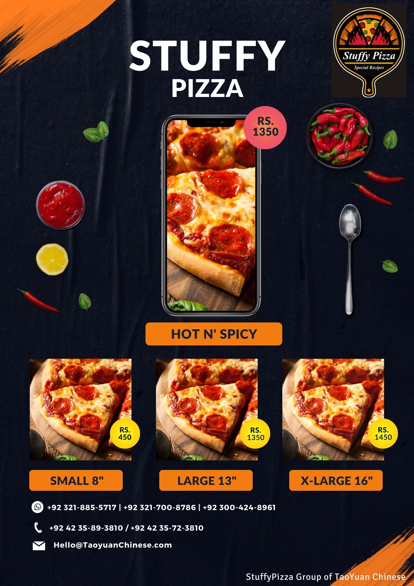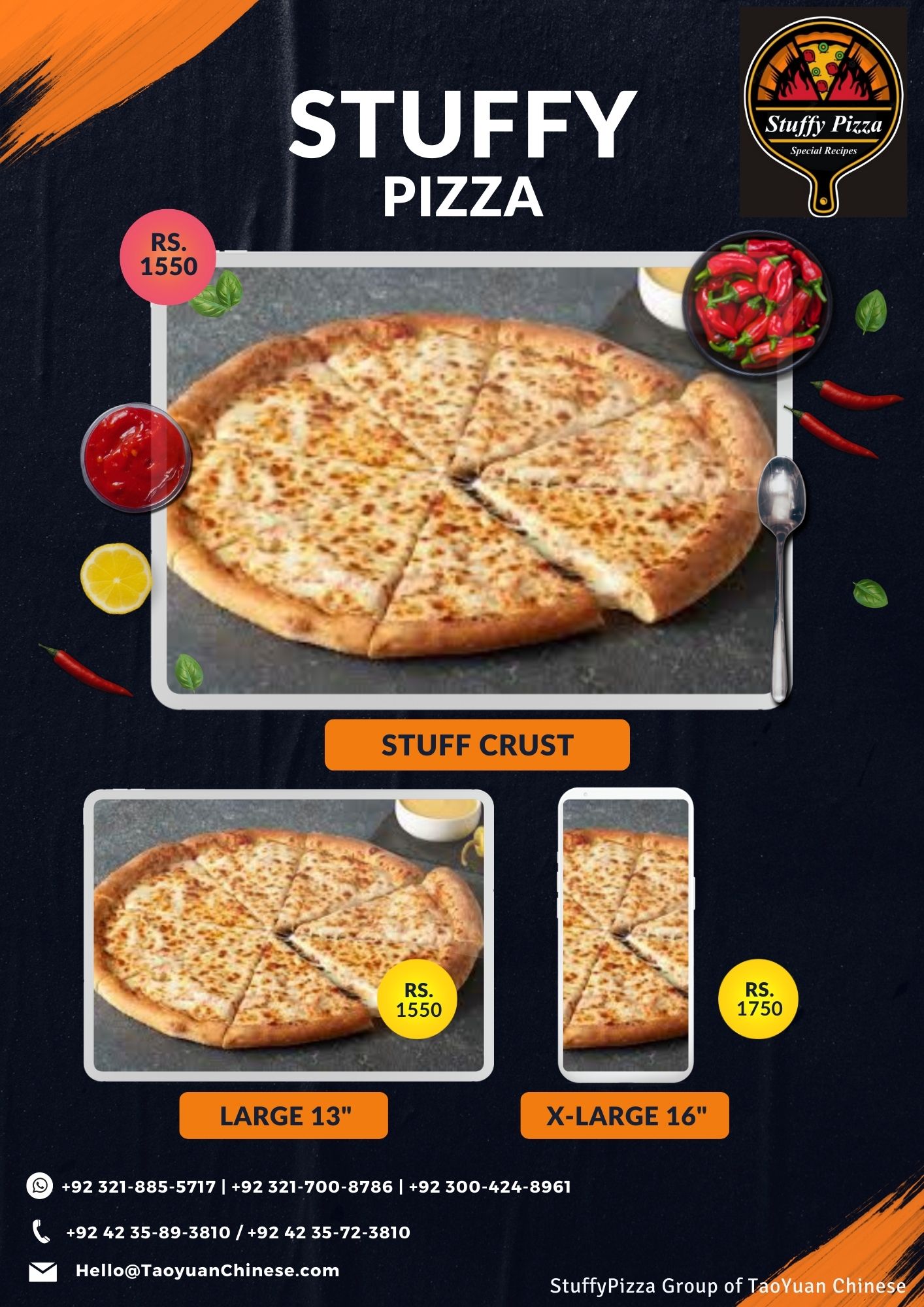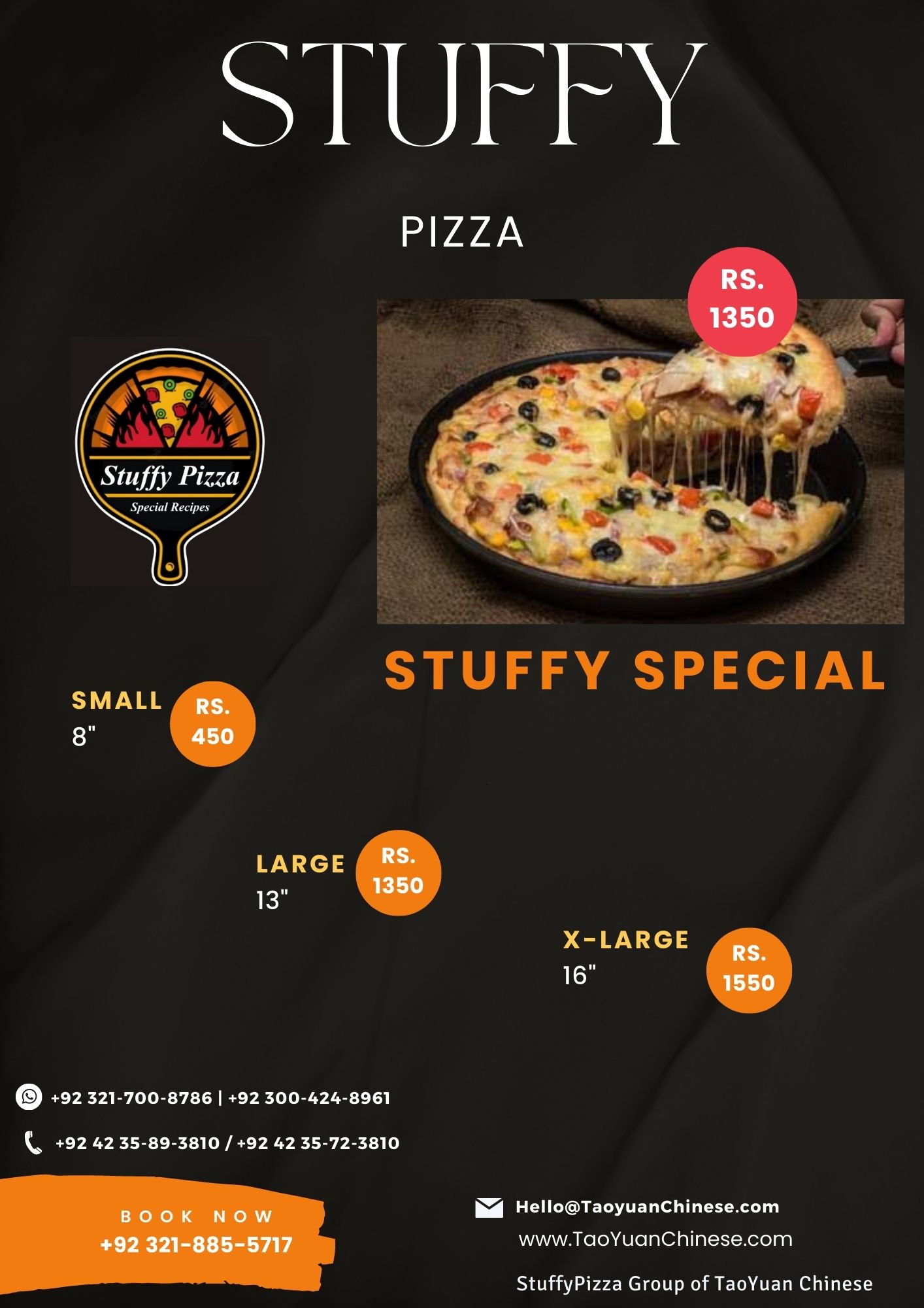 Stuffy Special PIzza S (8-Inch) -> 450 L (13-Inch) -> 1350 XL (16-Inch) -> 1550