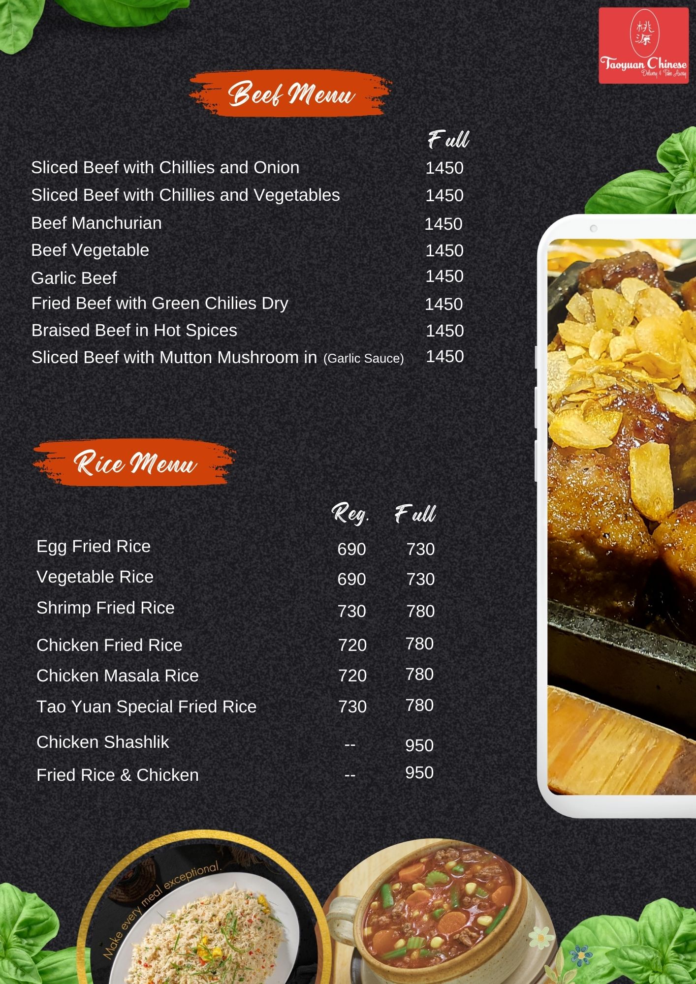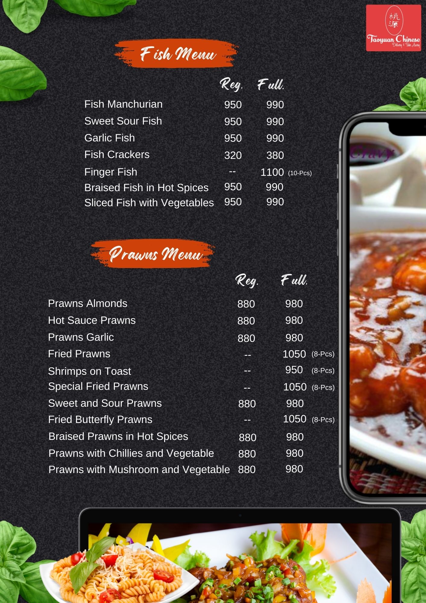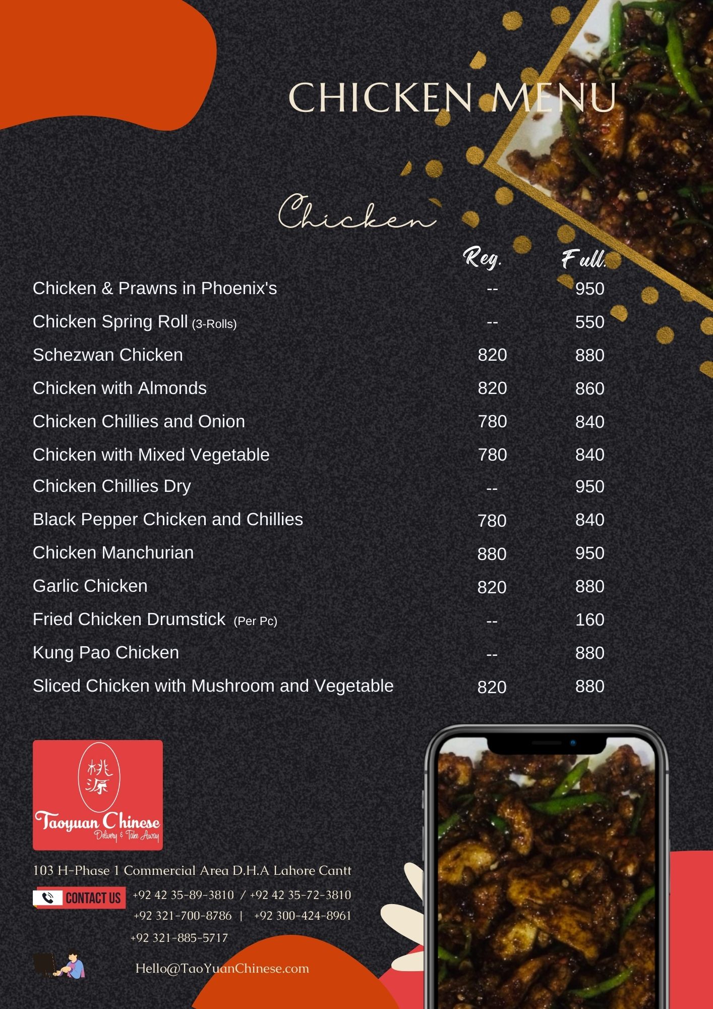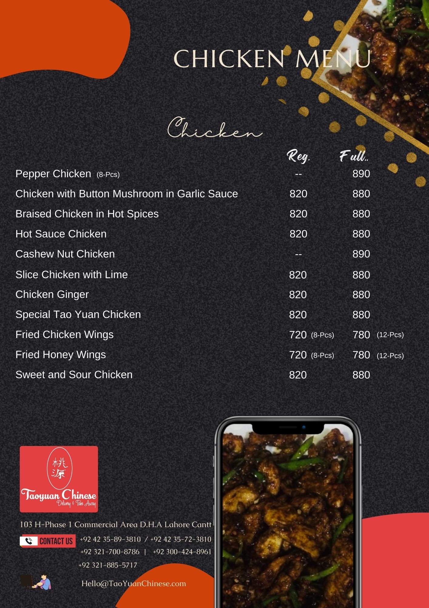 Black Pepper Chicken and Chillies Reg -> Rs. 780 Full -> Rs. 840