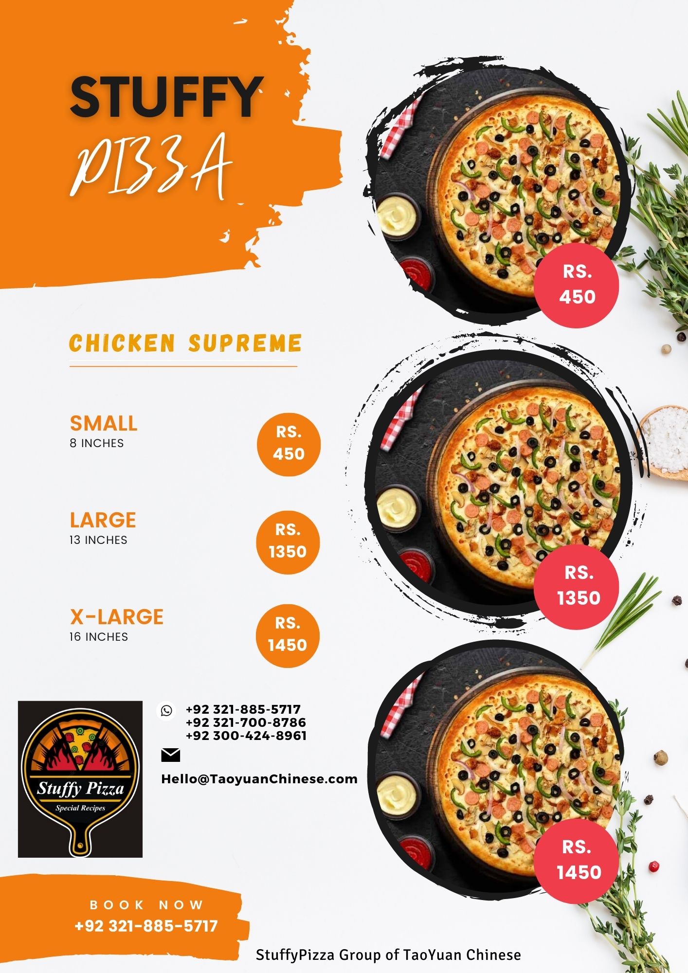Chicken Supreme S (8-Inch) -> 450 L (13-Inch) -> 1350 XL (16-Inch) -> 1450